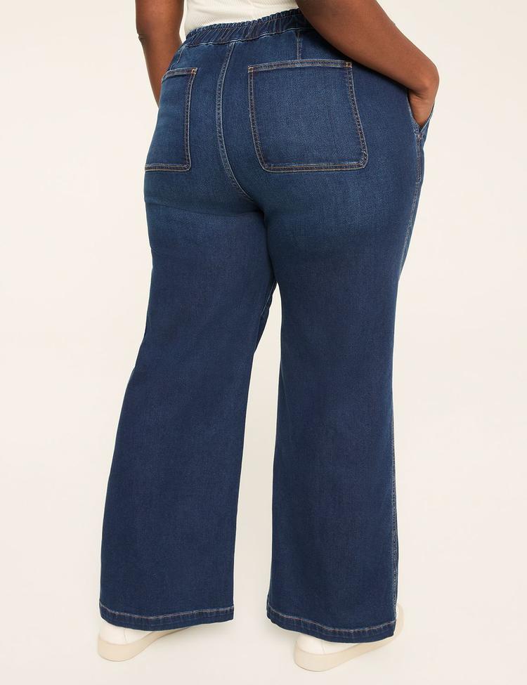 PULL-ON KNIT DENIM HIGH-RISE WIDE LEG JEAN