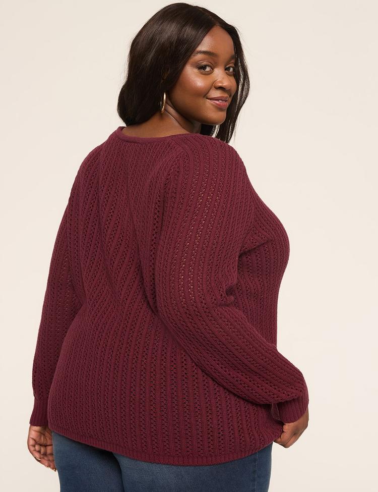 Available in Plus Size The sweater that defines cozy-chic - the timeless boatneck meets soft knit and hits of ribbed trim. FIT: Relaxed. An easy silhouette that fits away from the body. Front Length: 29" Standard length FEATURES: Boatneck Long sleeves Ribbed trim FABRIC: Soft sweater knit Machine Wash 60% Cotton/40% Acrylic Item Number #412663 Imported Plus Size Top ". Plus Size Relaxed Boatneck Sweater, in Burgundy, 26/28, Women's, Lane Bryant