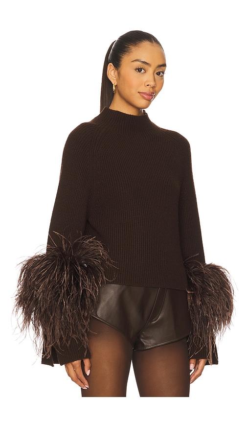 LAPOINTE MERINO MOCK NECK SWEATER IN DARK BROWN.
