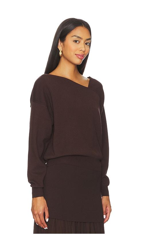 LINE & DOT FAVORITE OFF SHOULDER SWEATER IN BROWN.