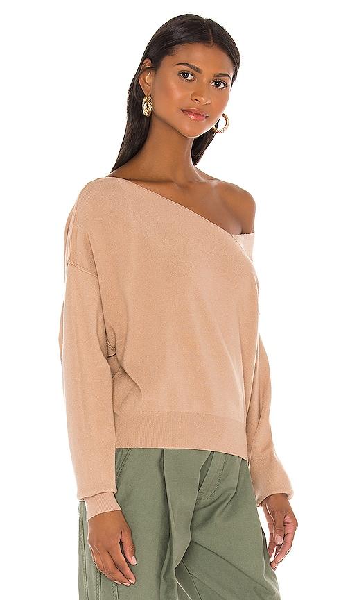 LINE & DOT FAVORITE OFF SHOULDER SWEATER IN TAN.