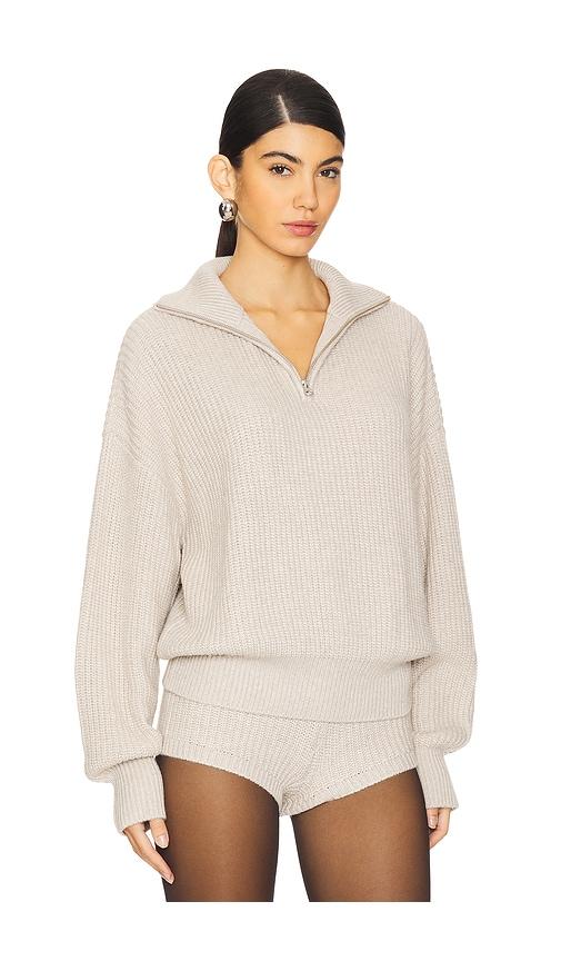 LOVERS AND FRIENDS SHIVANI ZIP SWEATER IN BEIGE.