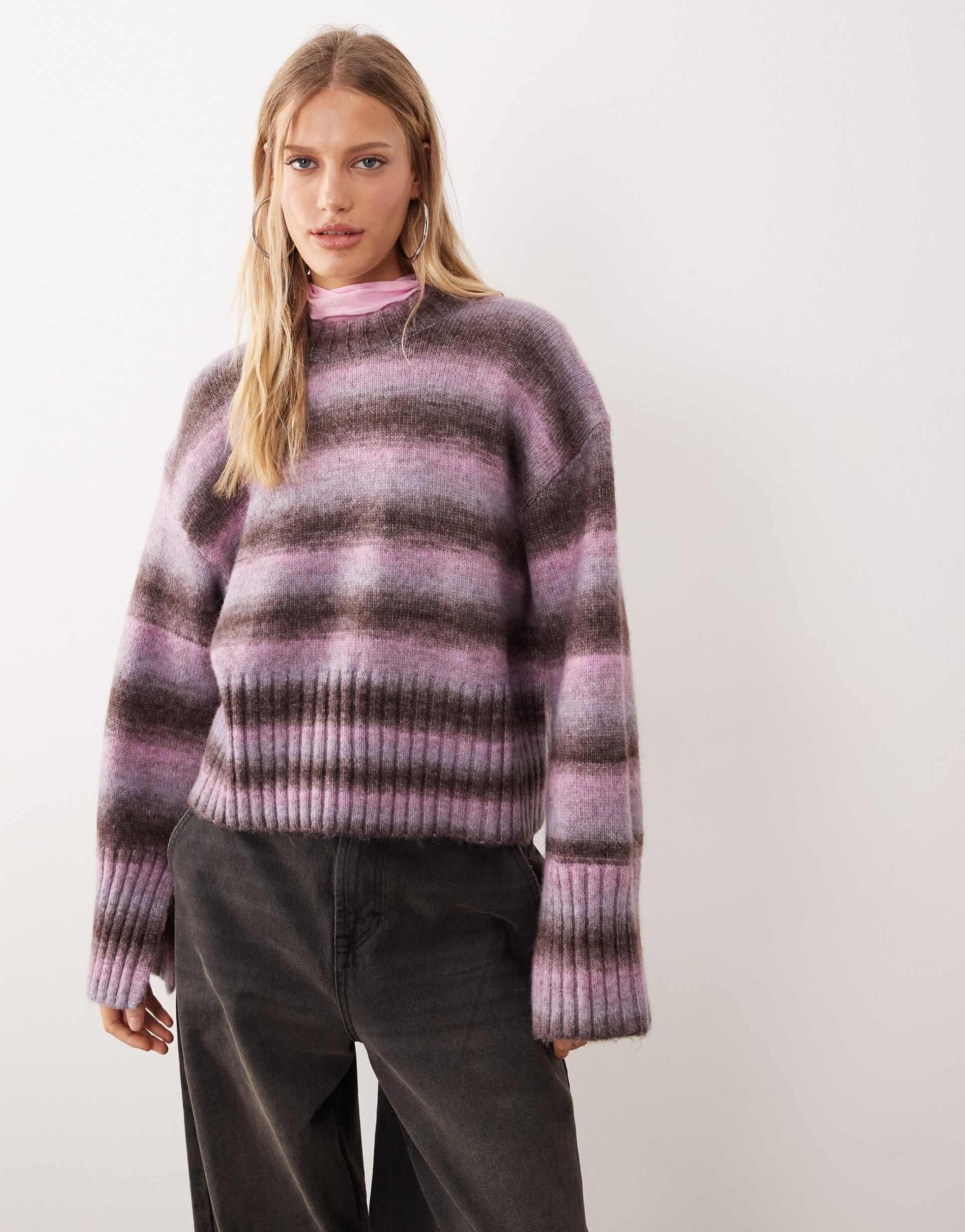 MONKI BOXY SWEATER WITH FADED STRIPES IN PINK