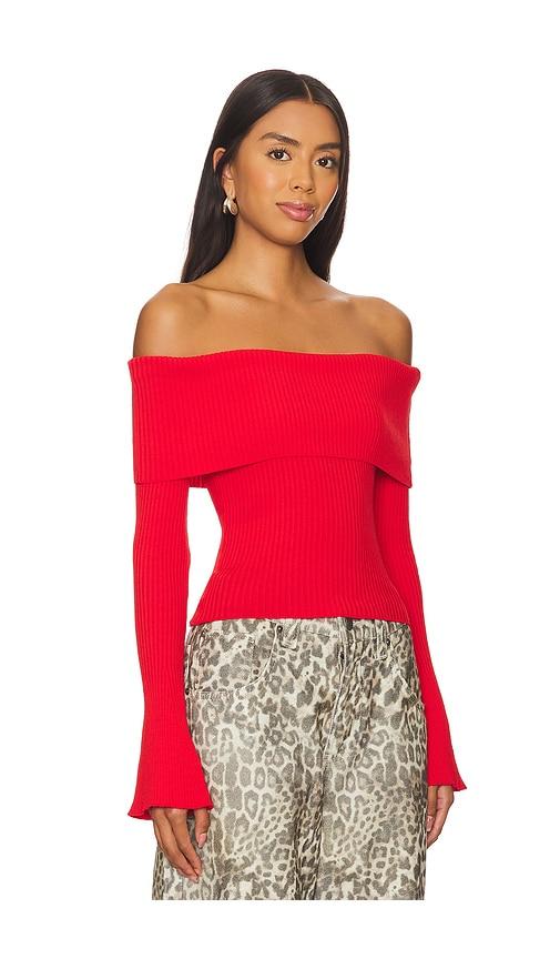 MORE TO COME CANDACE OFF SHOULDER SWEATER IN RED.