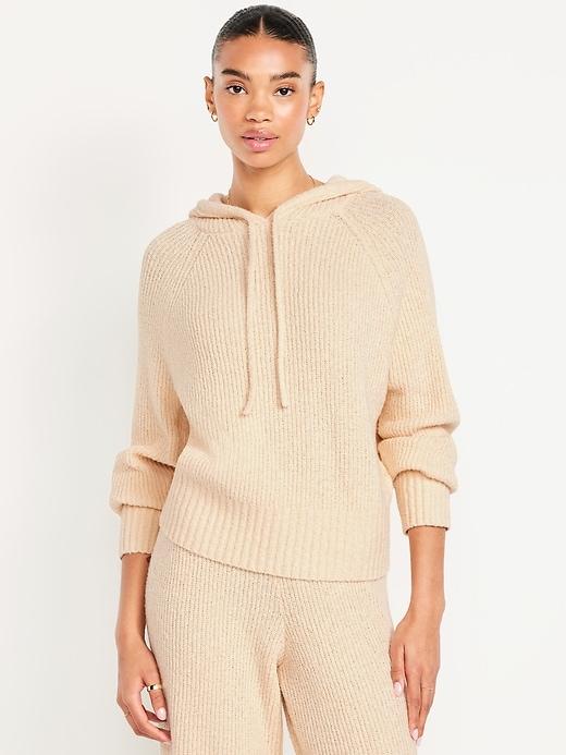 BOUCLÉ PULLOVER HOODIE SWEATER