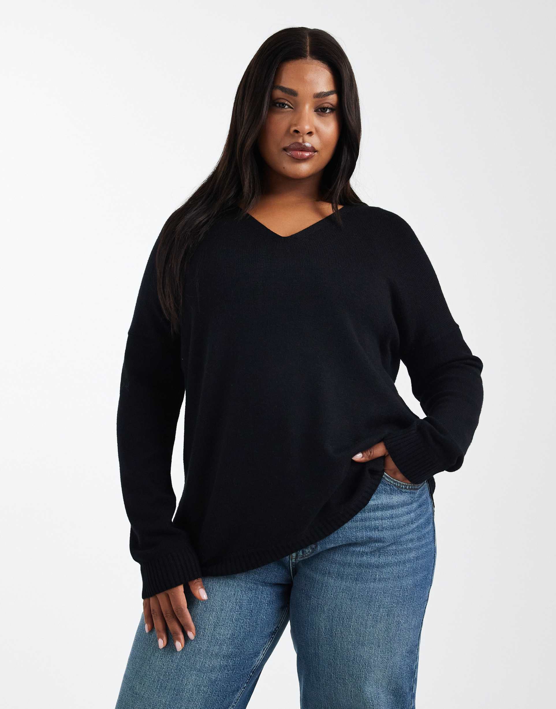 ONLY CURVE V NECK SWEATER IN BLACK