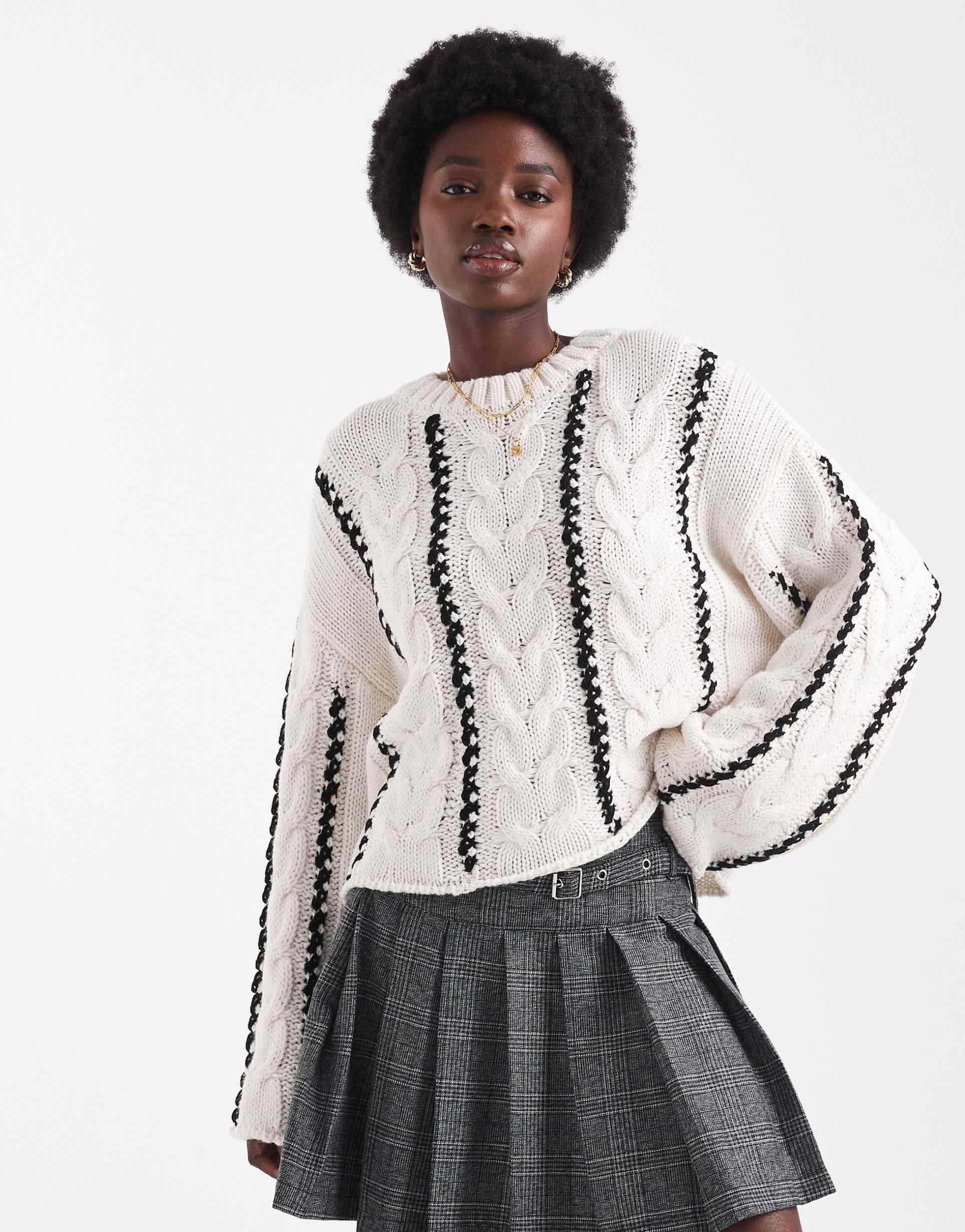 ONLY CABLE KNIT SWEATER IN WHITE WITH CONTRAST DETAIL