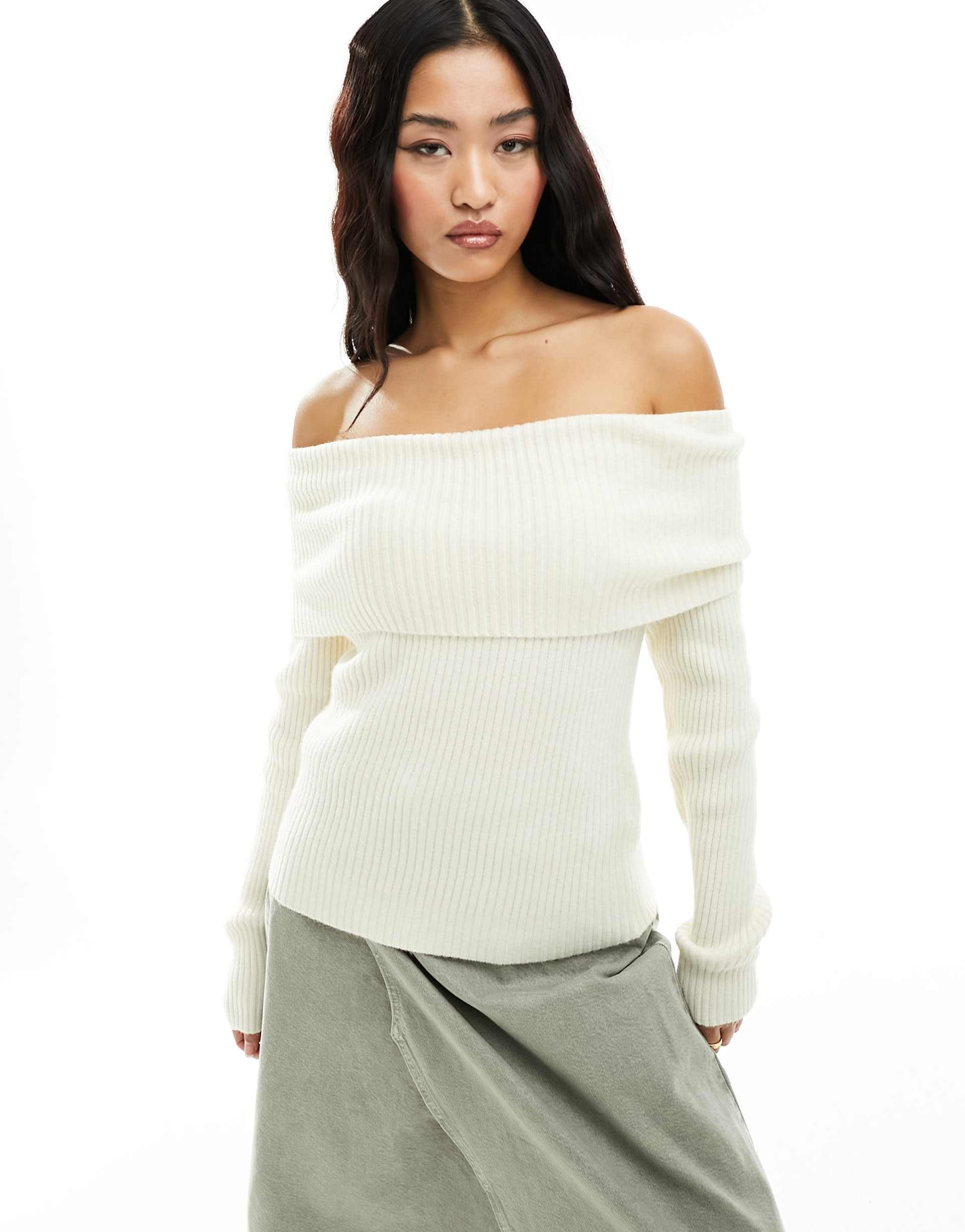 ONLY OFF THE SHOULDER KNIT SWEATER IN CREAM