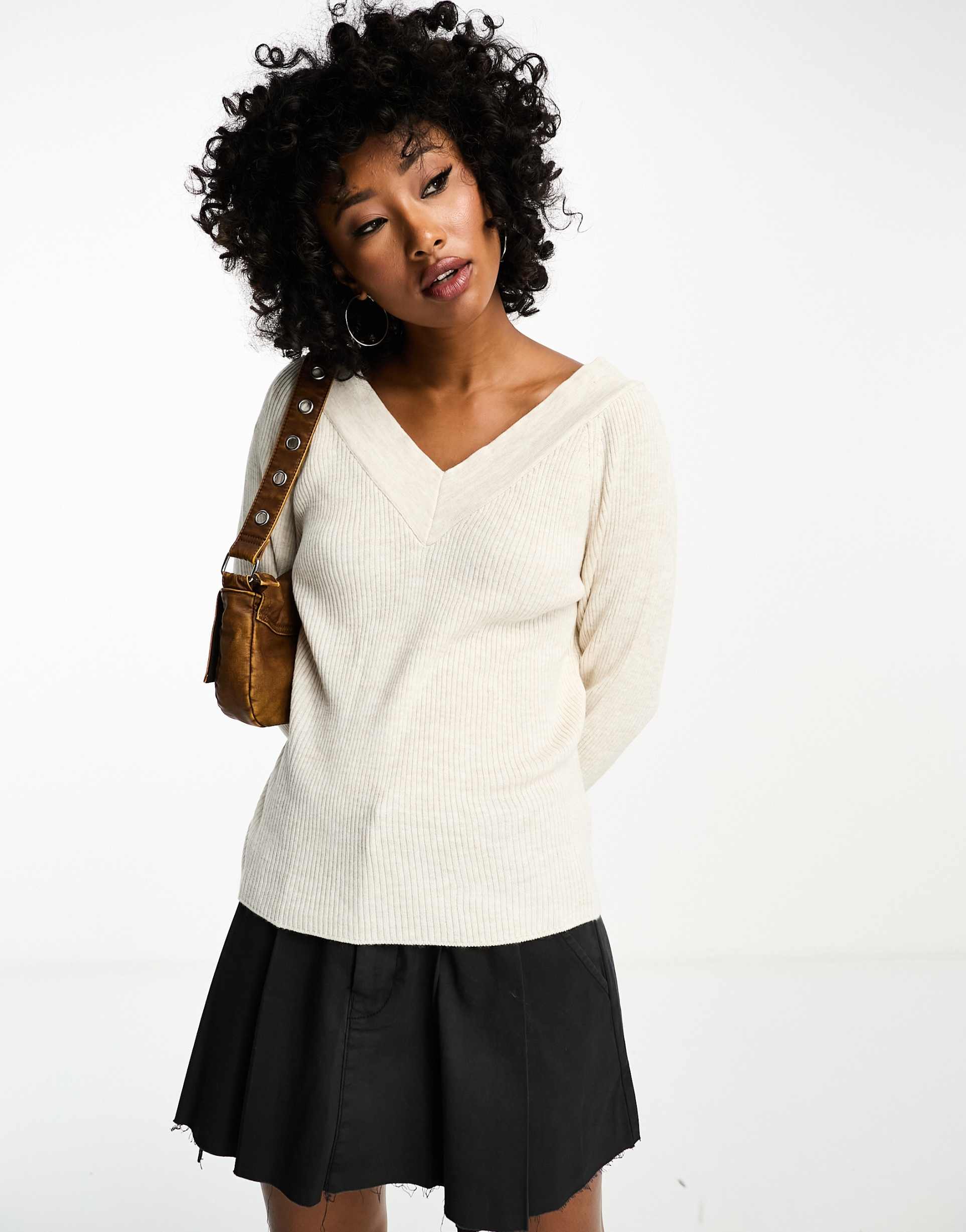 ONLY V NECK RIBBED SWEATER IN CREAM