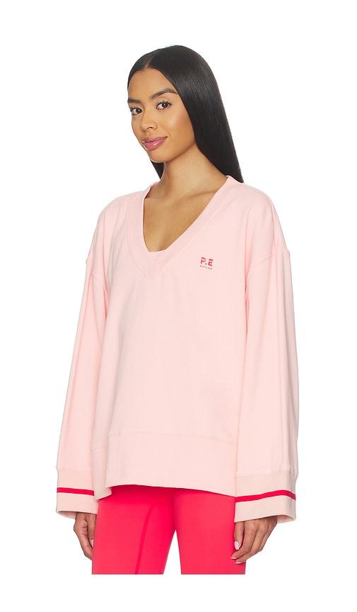 P.E NATION COURTSIDE V NECK SWEATER IN PINK.