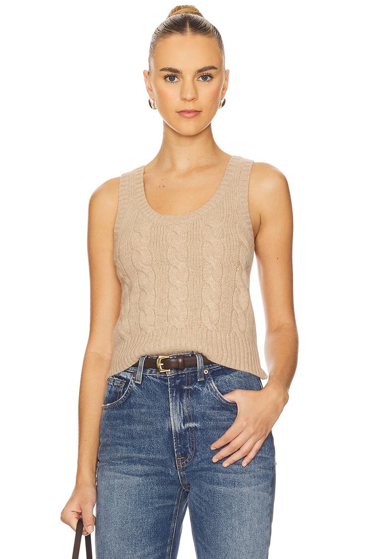 CABLE WOOL CASHMERE SLEEVELESS SWEATER