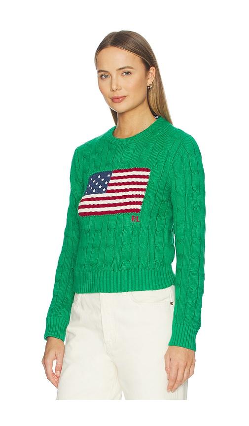 POLO RALPH LAUREN COTTON CREWNECK PULLOVER SWEATER IN GREEN.