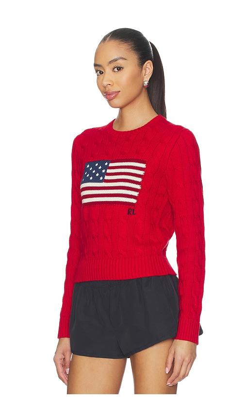 POLO RALPH LAUREN COTTON CREWNECK PULLOVER SWEATER IN RED.