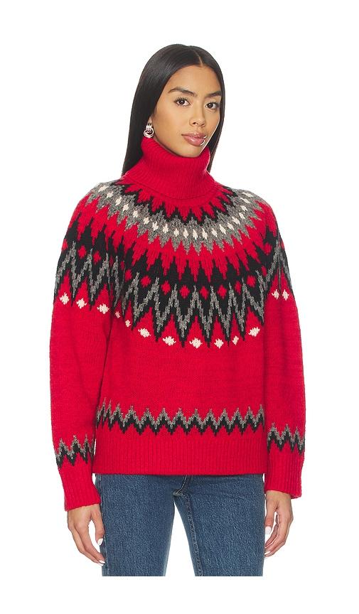 POLO RALPH LAUREN FAIR ISLE WOOL BLEND TURTLENECK SWEATER IN RED.