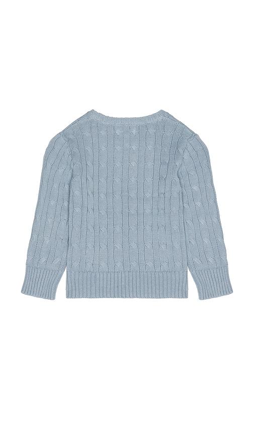 POLO RALPH LAUREN LONG SLEEVE COTTON CABLE KNIT CREWNECK SWEATER IN BABY BLUE.