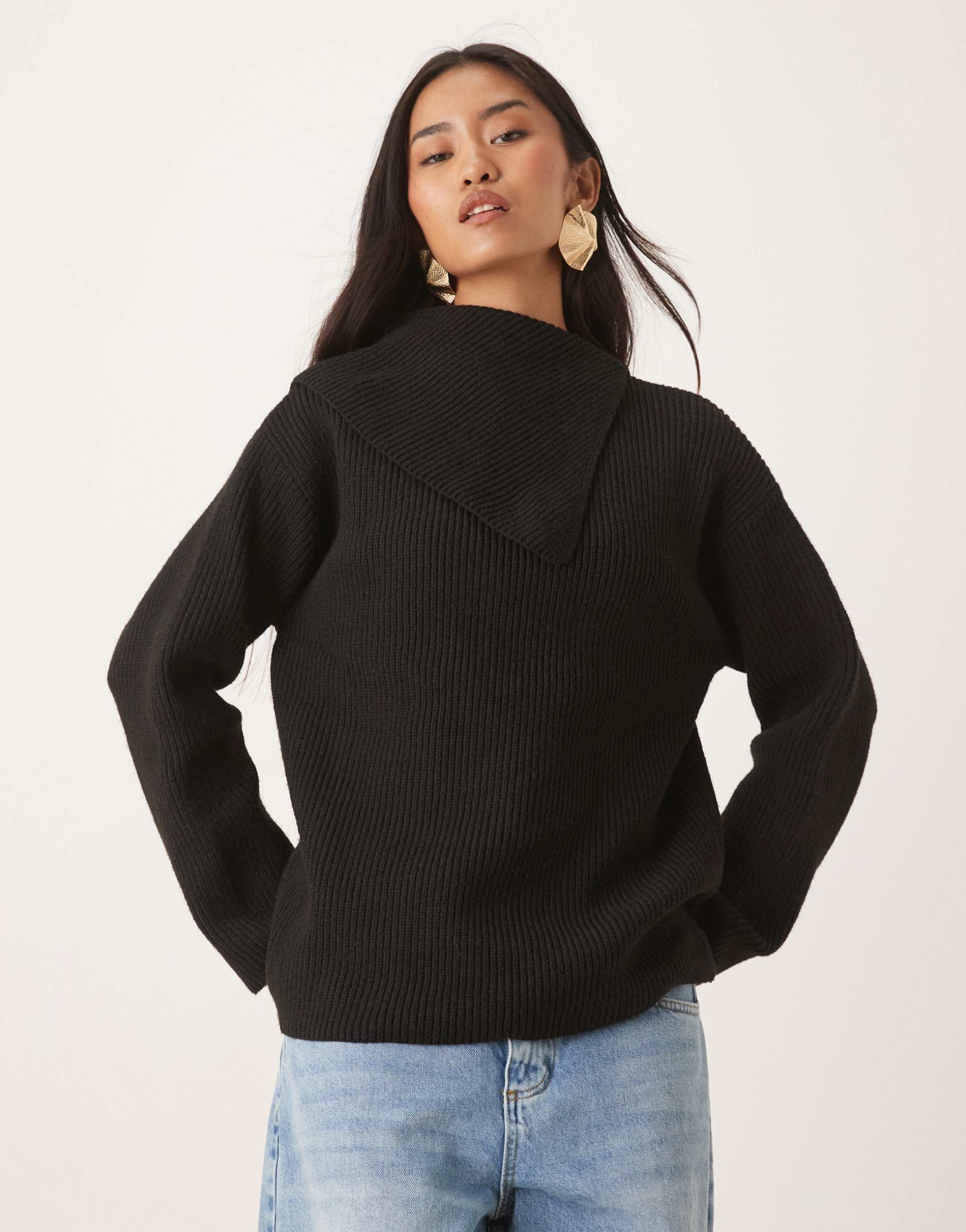 PRETTY LAVISH SPLIT COLLAR OVERSIZED KNIT SWEATER IN BLACK