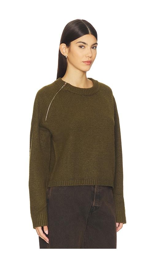 SANCTUARY ZIP IT SWEATER IN DARK GREEN.
