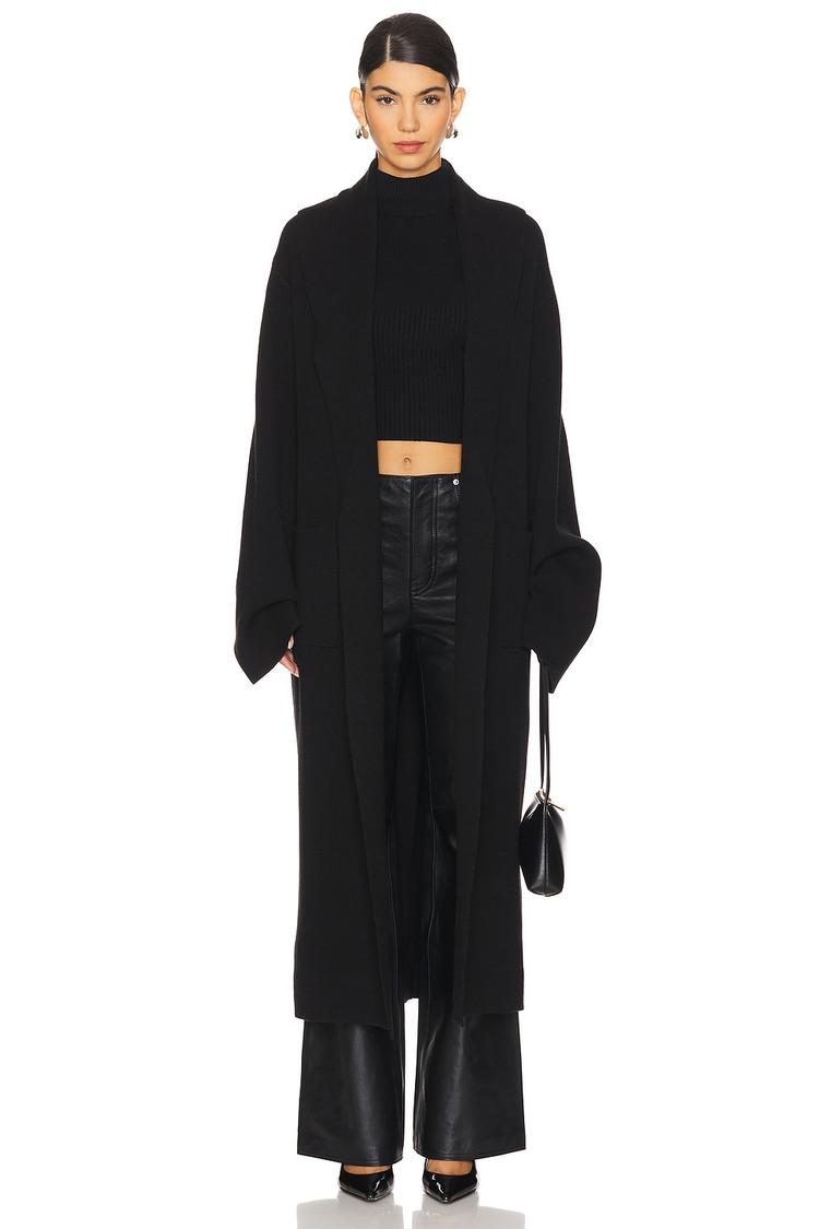 This longline sweater duster features a relaxed fit crafted from a slinky knit fabric blend of polyester, acrylic, and lyocell. It showcases a stand collar neckline and long regular sleeves, extending to a full length for elegant coverage. The open front design is complemented by an adjustable waist tie belt, enhancing shape and style. Functional front slip pockets add practical appeal. Ideal for casual days, workwear, and business casual occasions during autumn, winter, and spring seasons, this minimalist and classic outerwear piece offers both comfort and sophistication.