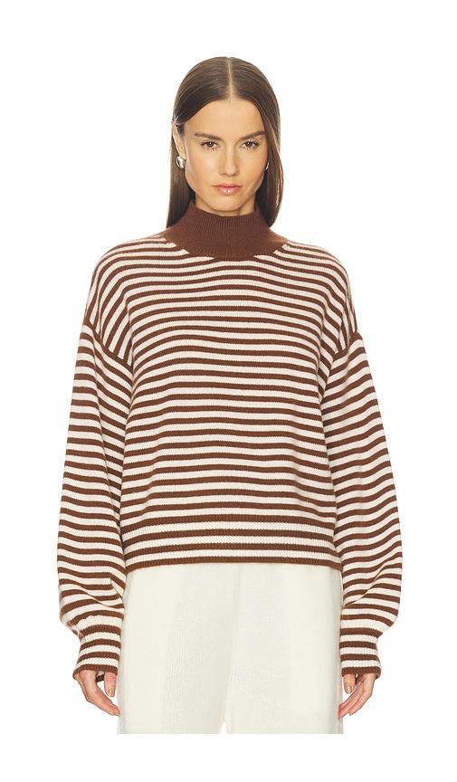 SRG WALDO STRIPED CASHMERE SWEATER & SCARF IN CREAM,COGNAC.