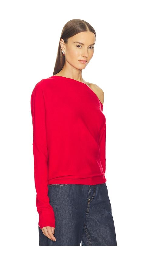 SRG YOLAINE CASHMERE OFF-SHOULDER SWEATER IN RED.