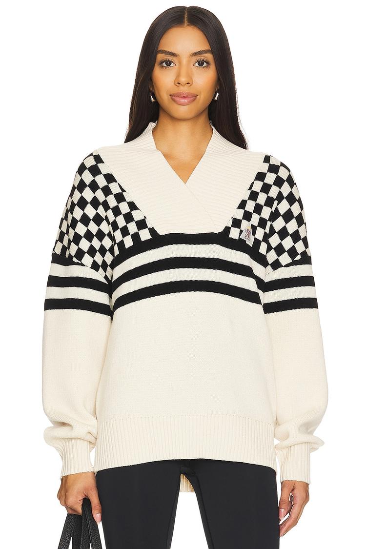 black and cream checkered sweater