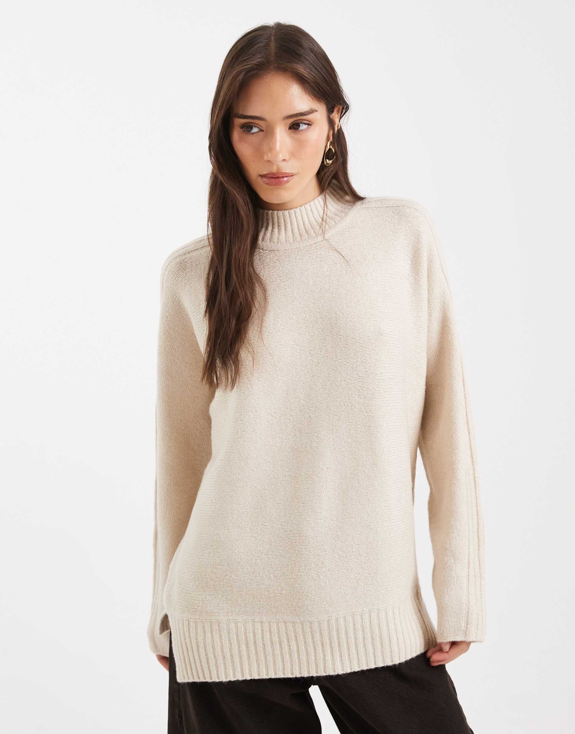 THREADBARE HIGH NECK OVERSIZED SWEATER IN OATMEAL