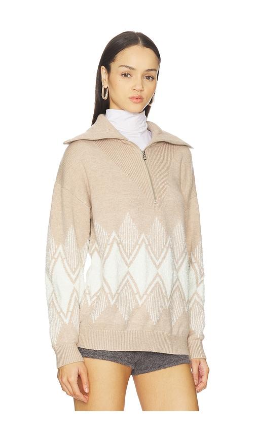 VARLEY BETTY JACQUARD HALF ZIP SWEATER IN TAUPE.