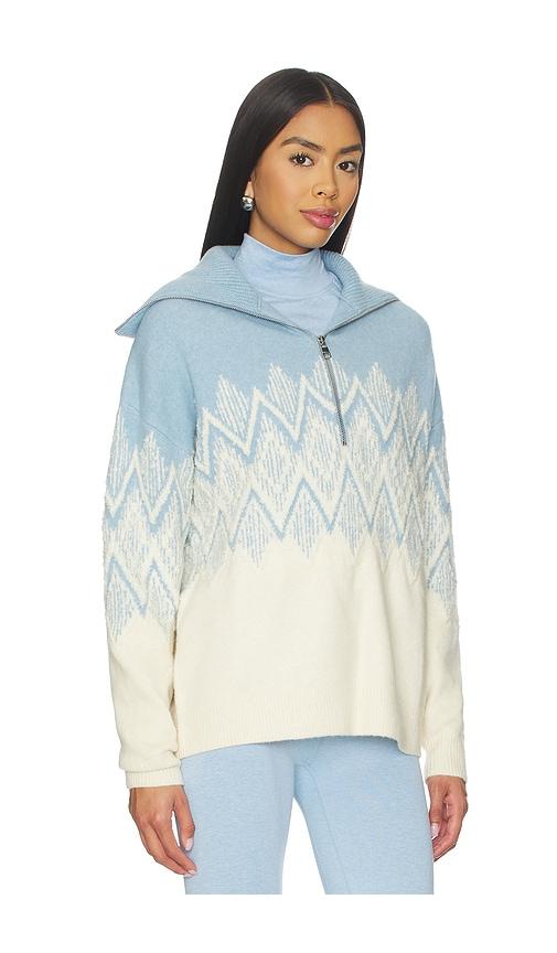 VARLEY HEDDA FAIRISLE HALF ZIP SWEATER IN BLUE.