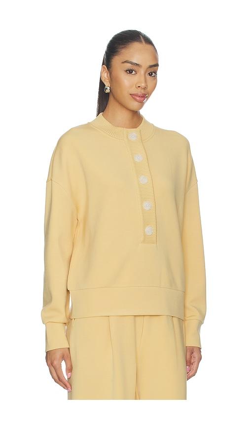 VARLEY REENA BUTTON FRONT SWEATER IN YELLOW.