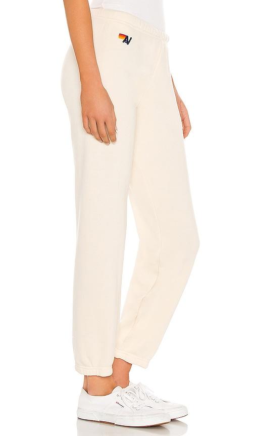 AVIATOR NATION 5 STRIPE SWEATPANT IN IVORY.