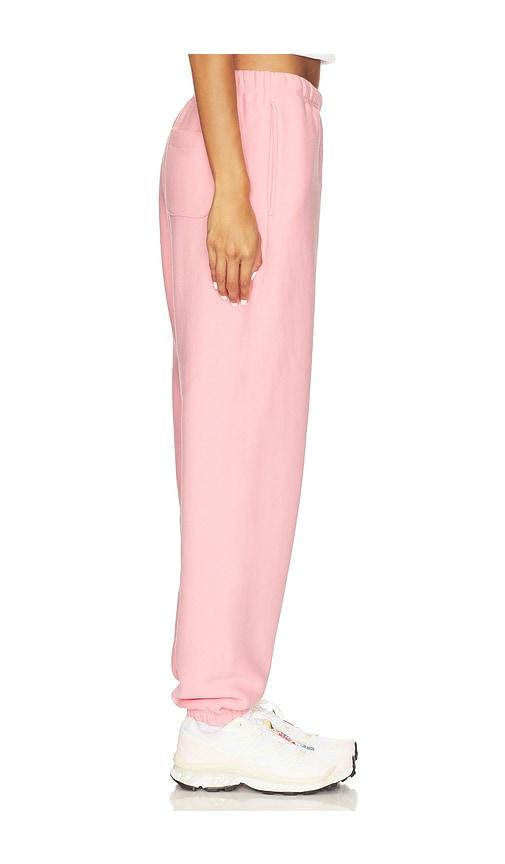 CHAMPION ESSENTIALS REVERSE WEAVE CINCHED BOTTOM SWEATPANT IN PINK.