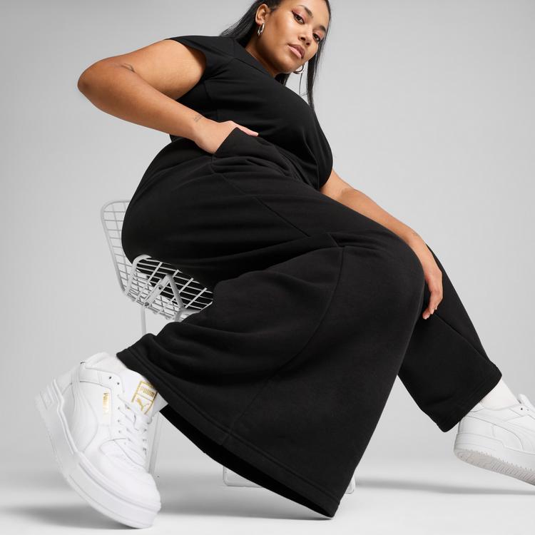 PUMA WARDROBE ESSENTIALS WOMEN'S WIDE LEG SWEATPANTS IN BLACK, SIZE XL