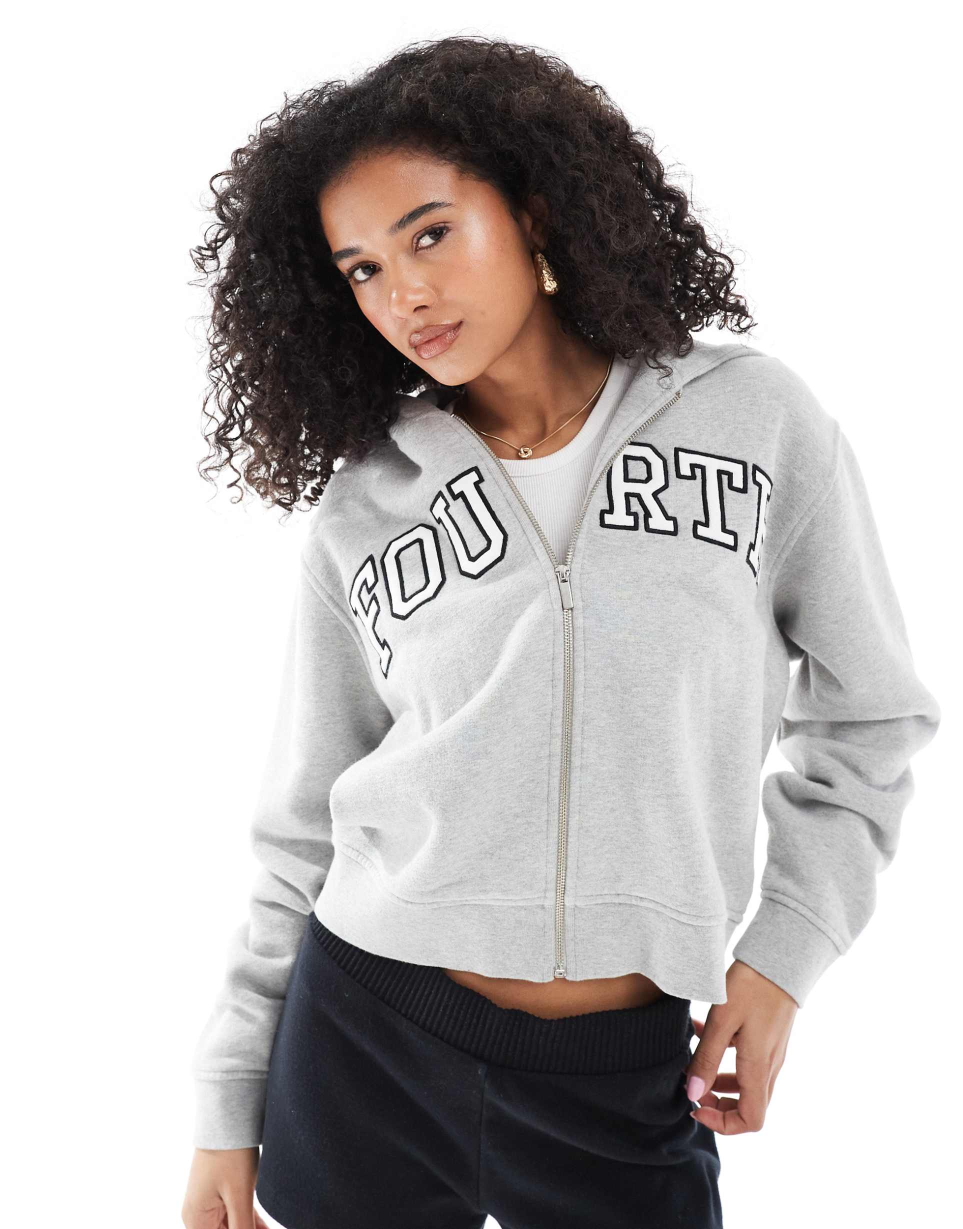 This gray cotton hoodie from 4th & Reckless features a regular fit with a waist-length cut and long regular sleeves. The front zipper closure and fixed hood provide functional comfort, while the embroidered logo on the front adds a stylish detail. Crafted from soft, warm sweatshirt fabric with a cozy raised texture inside, this hoodie is perfect for casual wear, loungewear, and street style looks during autumn, winter, and spring seasons. Its practical pockets enhance utility, making it a versatile addition to your everyday wardrobe.