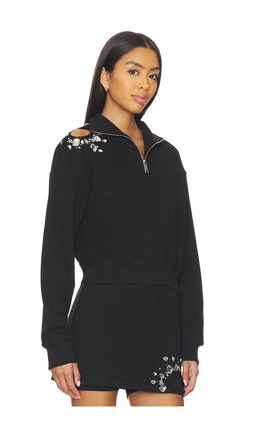 AREA CUTOUT QUARTER ZIP SWEATSHIRT IN BLACK.