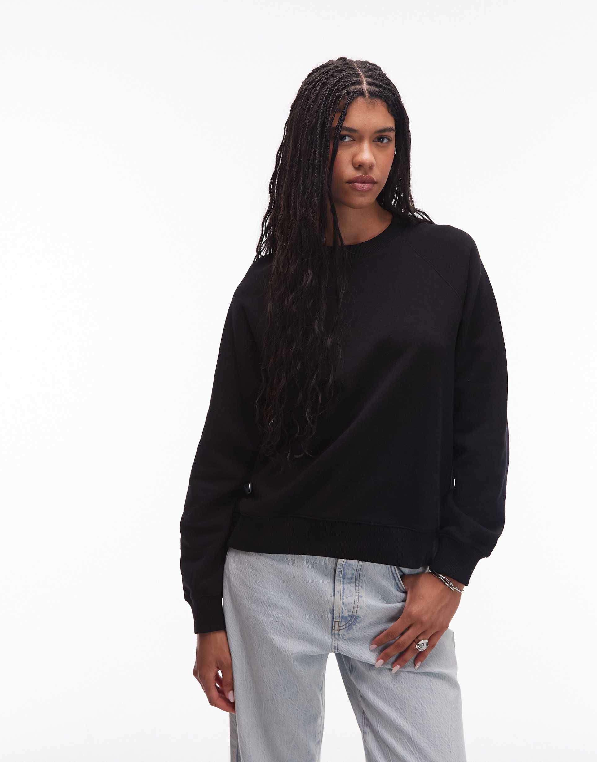 ARKET SOFT CREW NECK TERRY SWEATSHIRT IN BLACK
