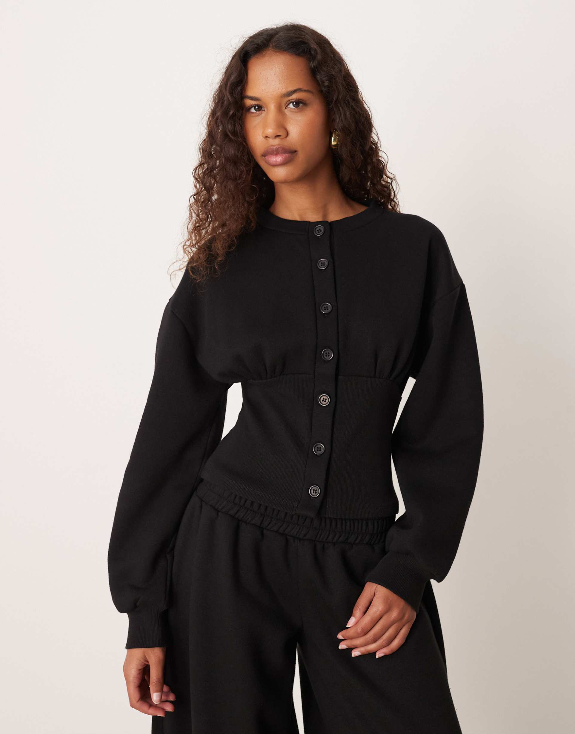 ASOS DESIGN CINCHED SWEATSHIRT BUTTON UP TOP IN BLACK - PART OF A SET