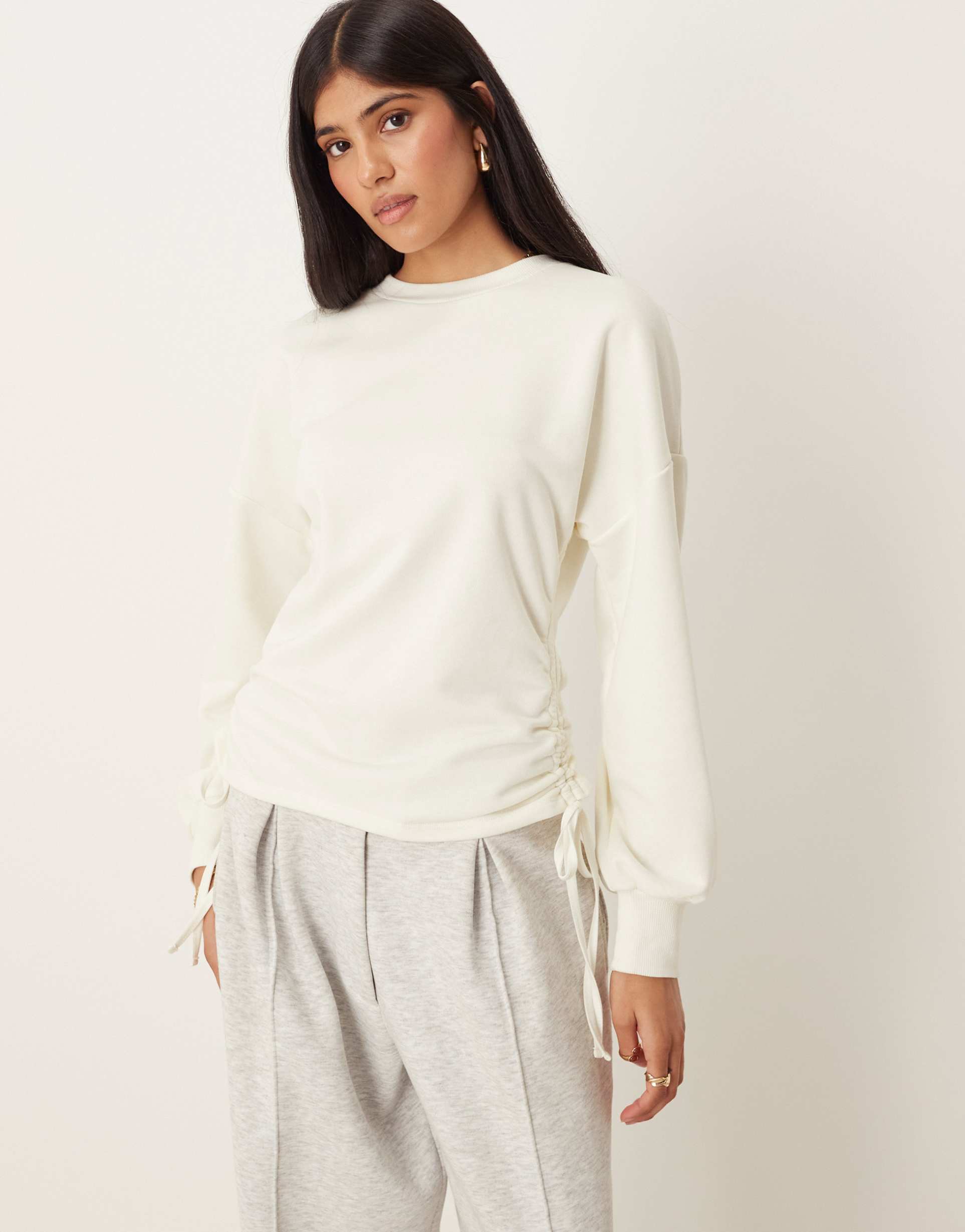 ASOS DESIGN CINCHED SWEATSHIRT WITH DRAWSTRING DETAIL IN ECRU