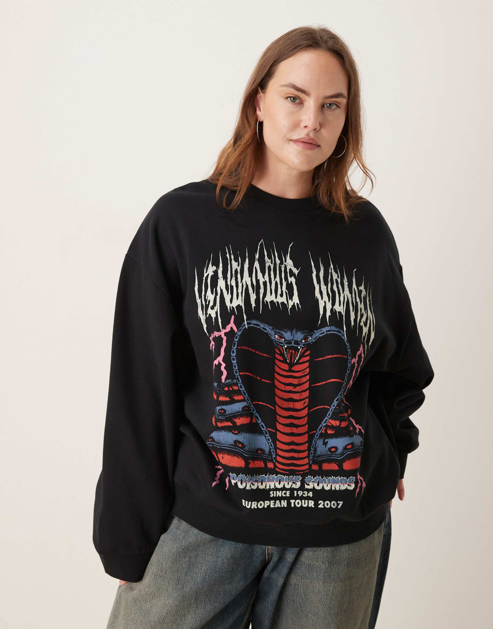 ASOS DESIGN CURVE OVERSIZED SWEATSHIRT WITH SNAKE ROCK GRAPHIC IN BLACK