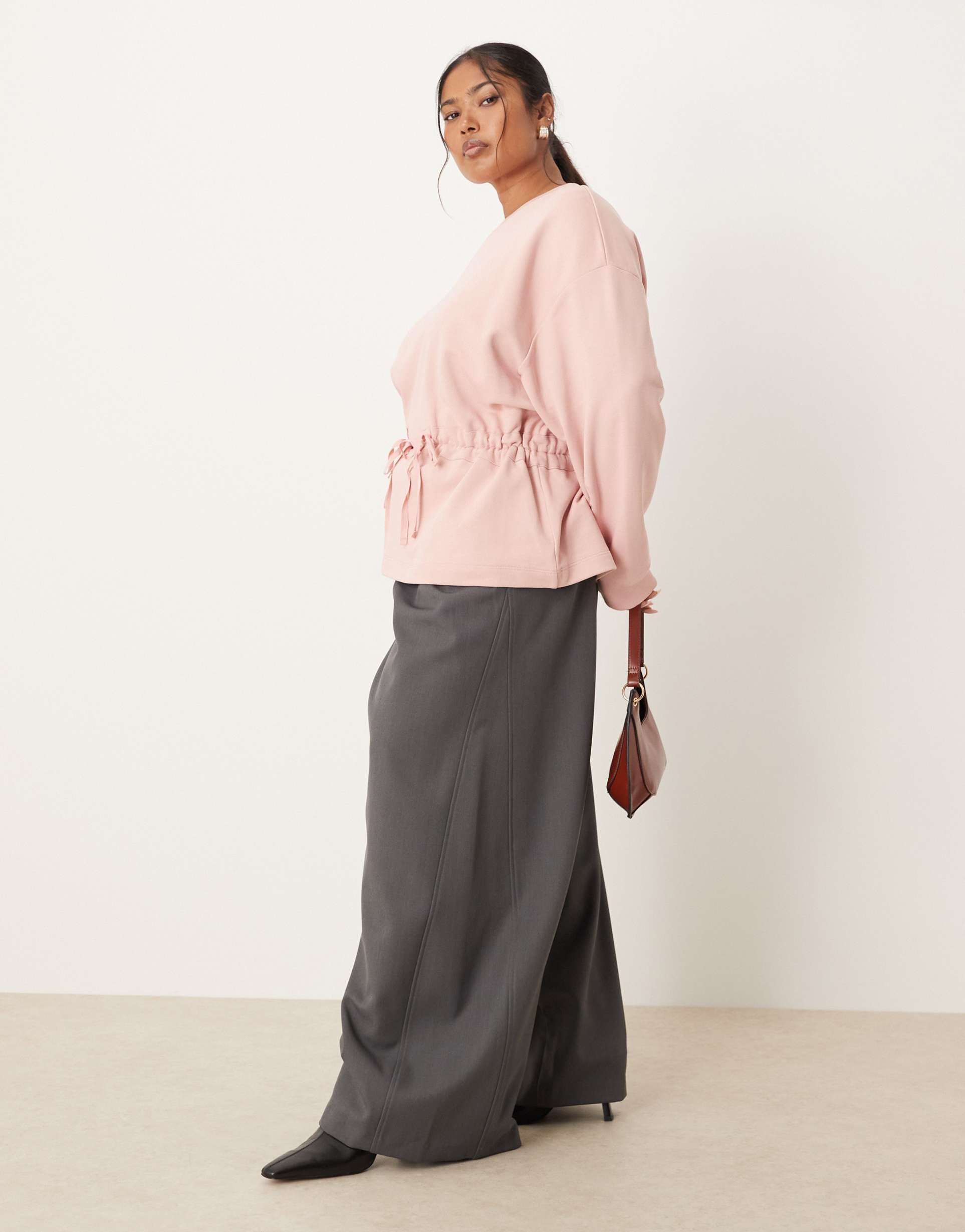 ASOS DESIGN CURVE SWEATSHIRT WITH RUCHED BOW DETAIL IN PINK
