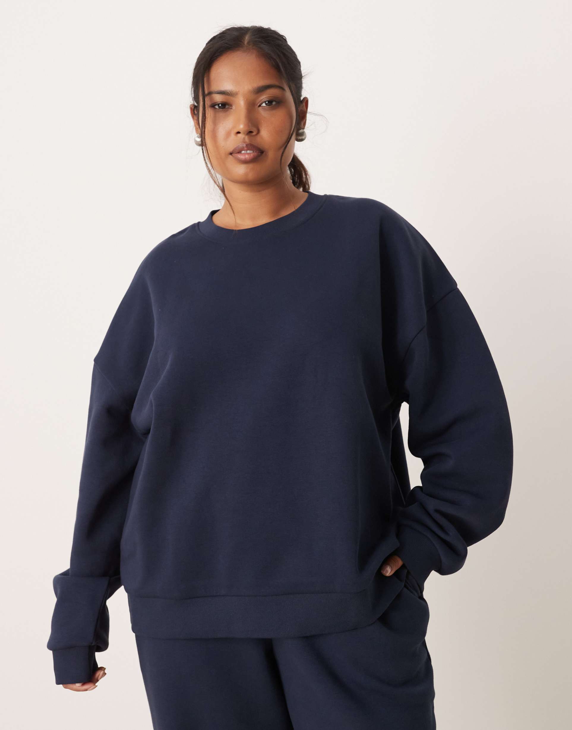 ASOS DESIGN CURVE ULTIMATE OVERSIZED BRUSHBACK SWEATSHIRT IN NAVY