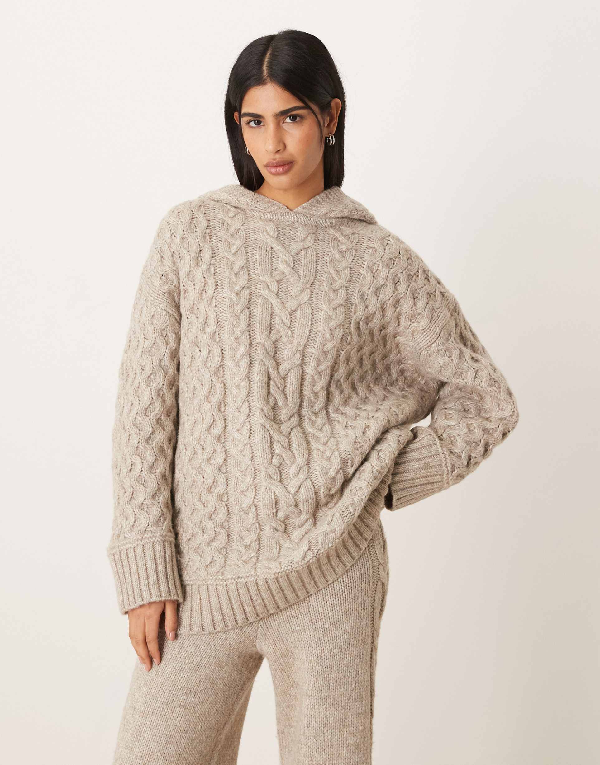 ASOS DESIGN OVERSIZED CABLE KNIT HOODIE IN OATMEAL - PART OF A SET