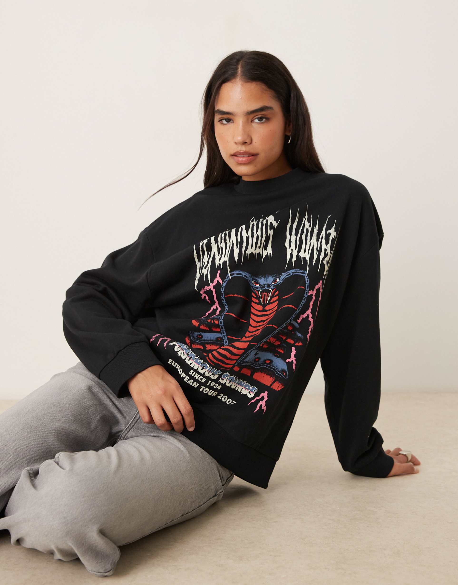 ASOS DESIGN OVERSIZED SWEATSHIRT WITH SNAKE ROCK GRAPHIC IN BLACK