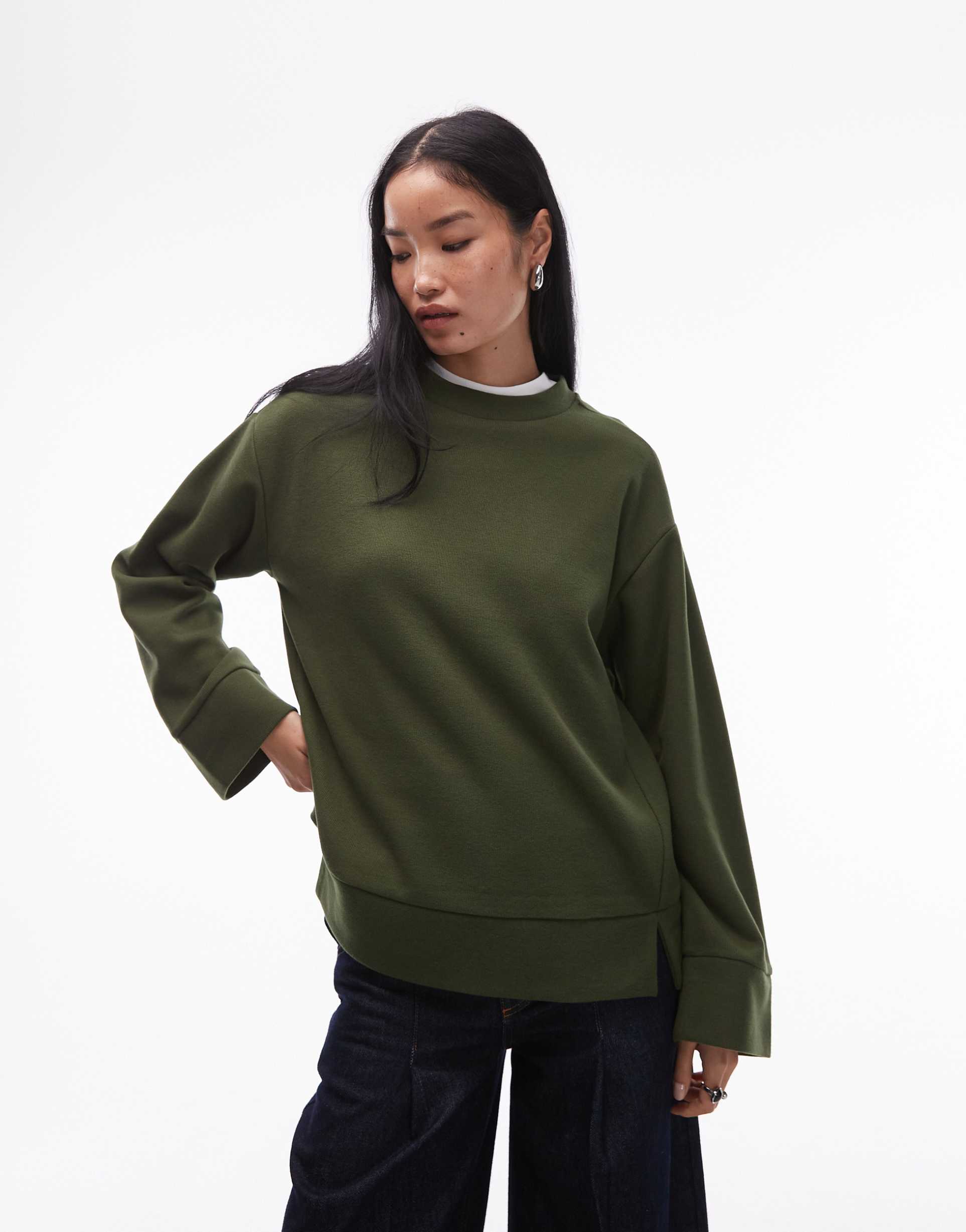 ASOS DESIGN SUPERSOFT SLIT HEM SWEATSHIRT IN KHAKI GREEN