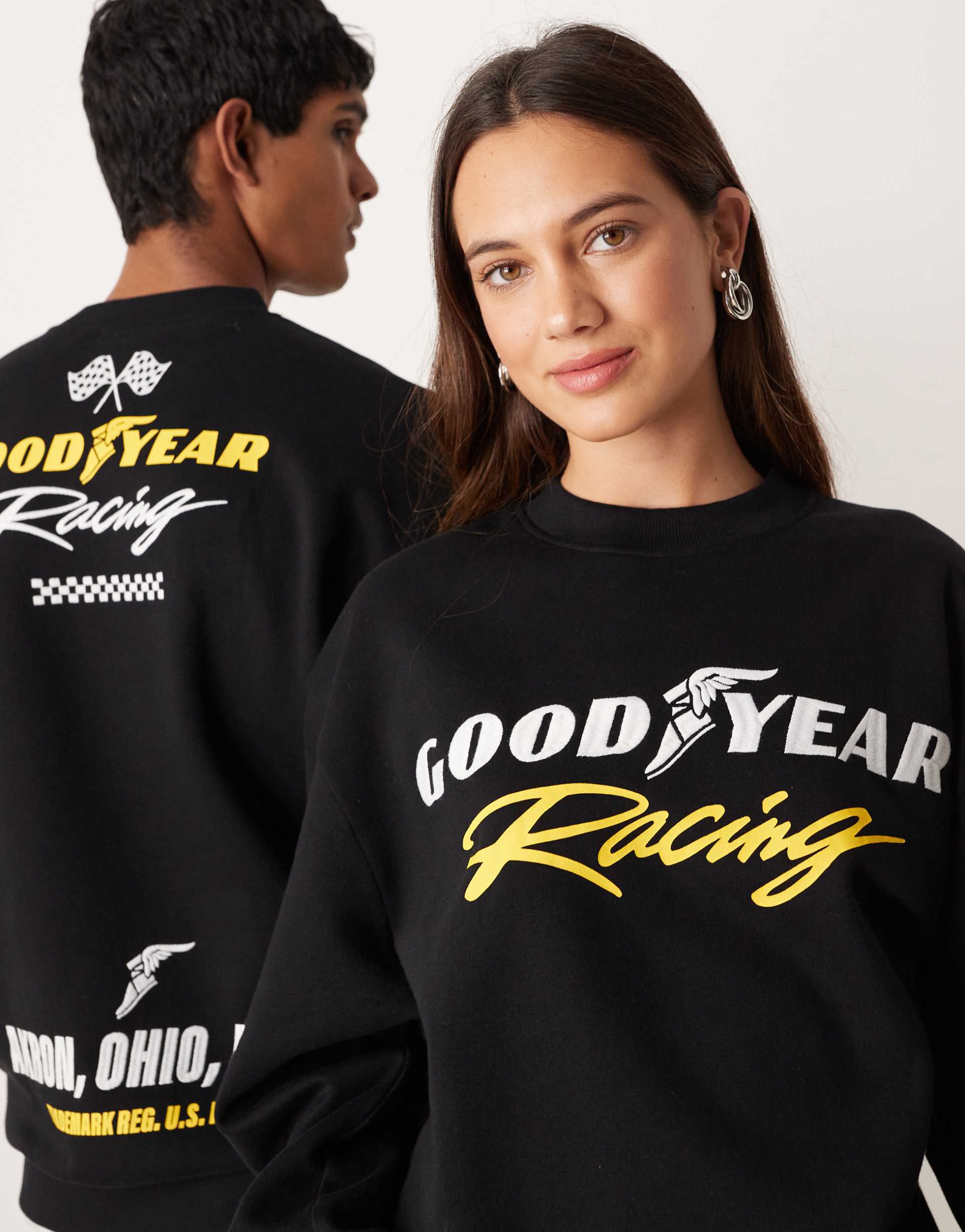 ASOS DESIGN UNISEX RELAXED SWEATSHIRT WITH GOOD YEAR RACING EMBROIDERY IN DARK GRAY
