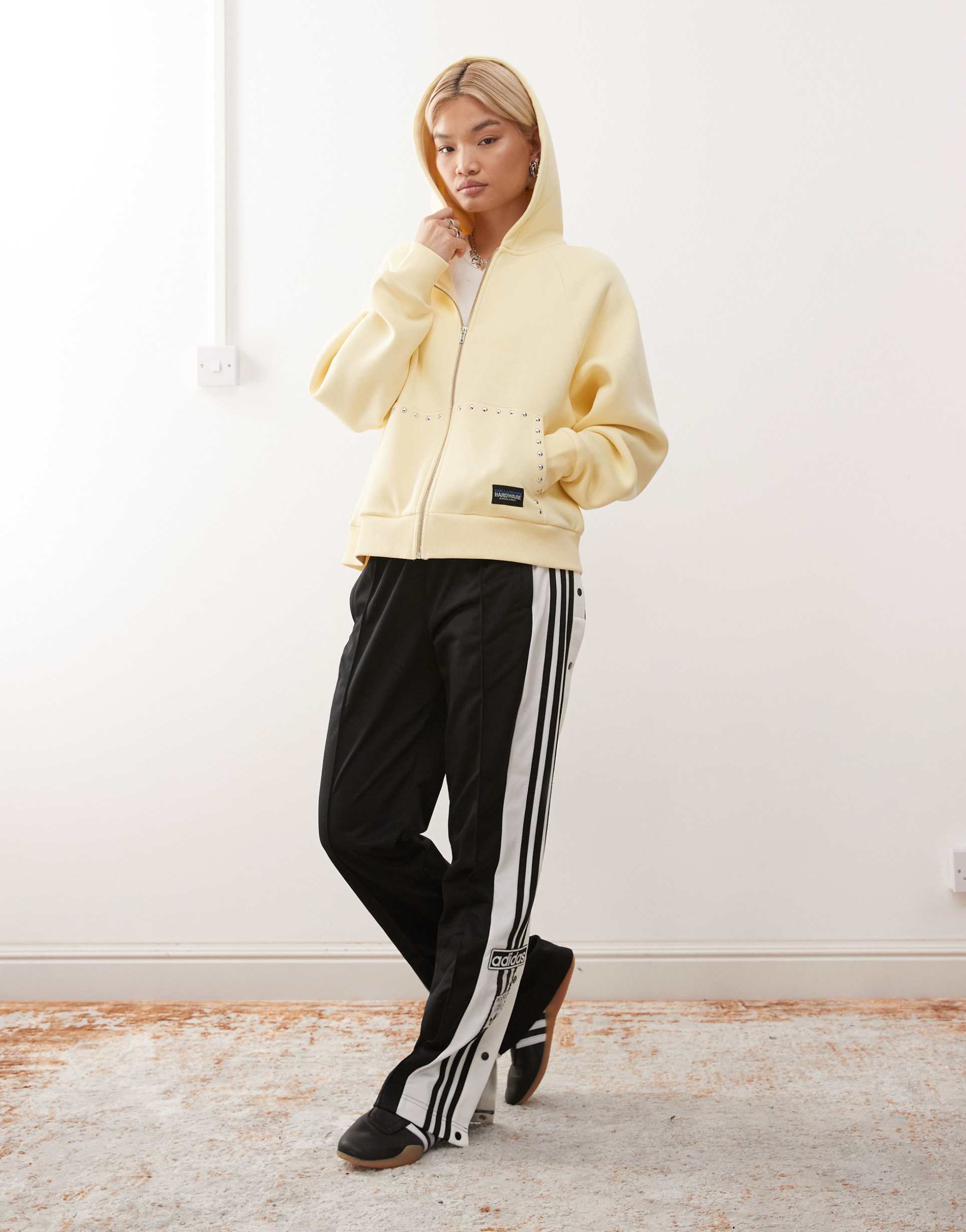 COLLUSION OVERSIZED ZIP UP HOODIE WITH STUD DETAIL IN BUTTERMILK