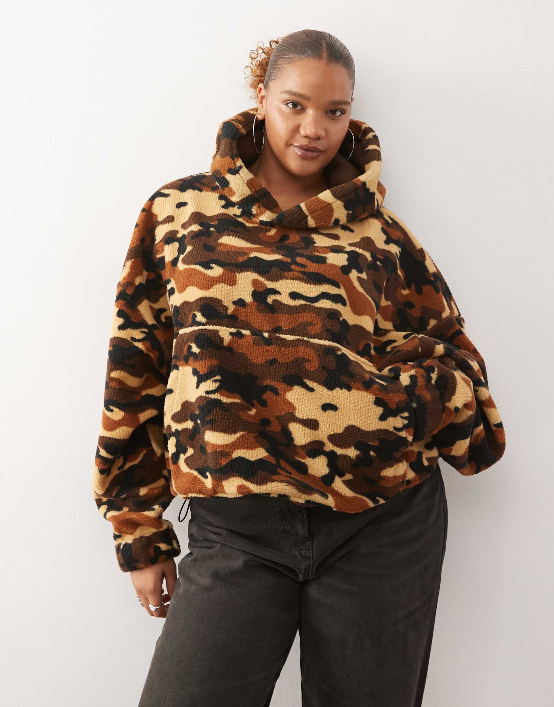COLLUSION PLUS CAMO BORG HOODIE
