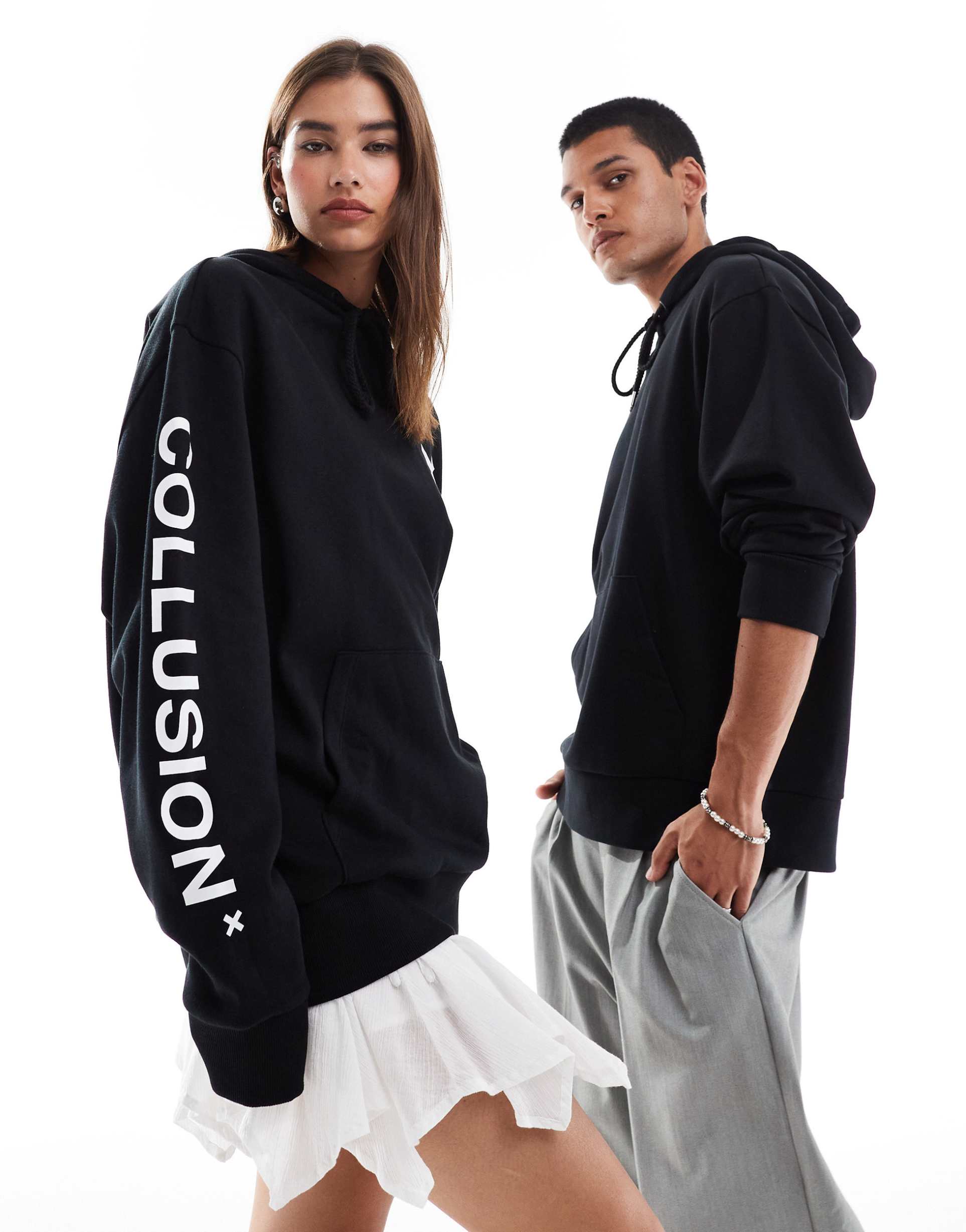 COLLUSION UNISEX LOGO HOODIE IN BLACK