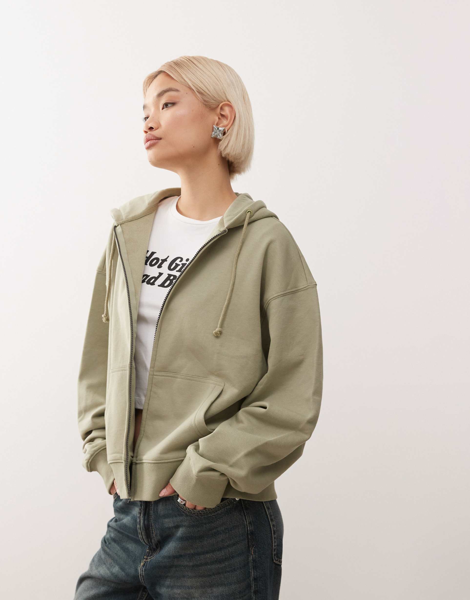 COLLUSION ZIP THROUGH BOXY HOODIE IN GRAY HEATHER