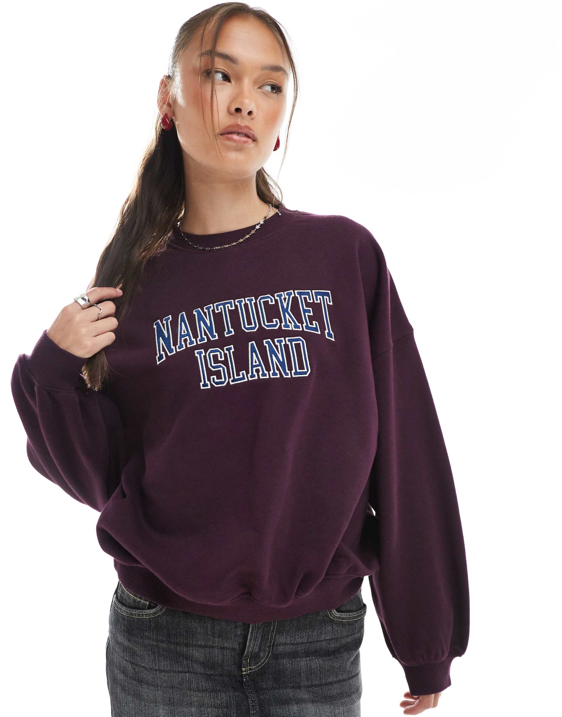 COTTON ON LICENSED GRAPHIC NANTUCKET SWEATSHIRT IN BURGUNDY