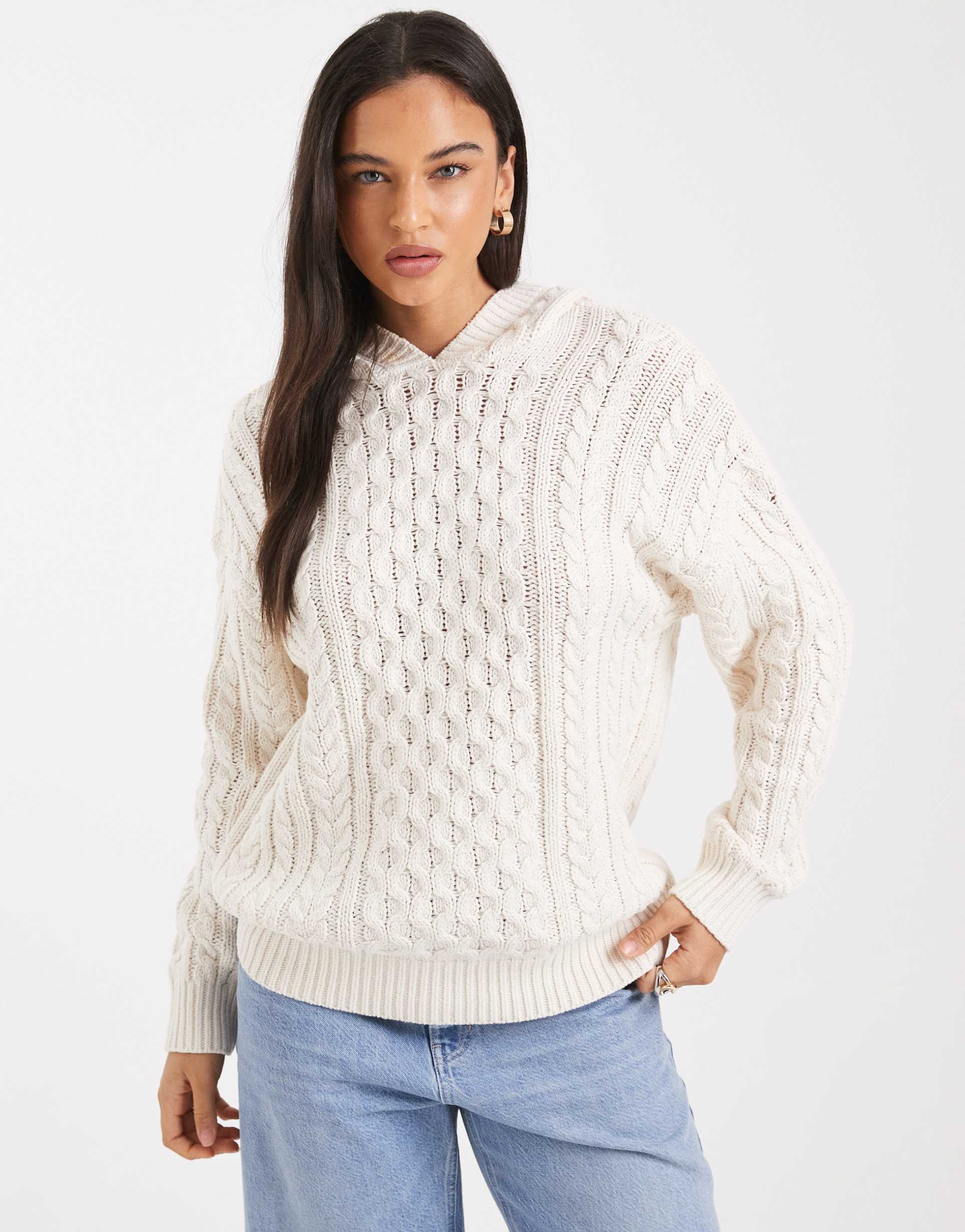 COTTON ON OVERSIZED CABLE KNIT HOODIE IN PORCELAIN